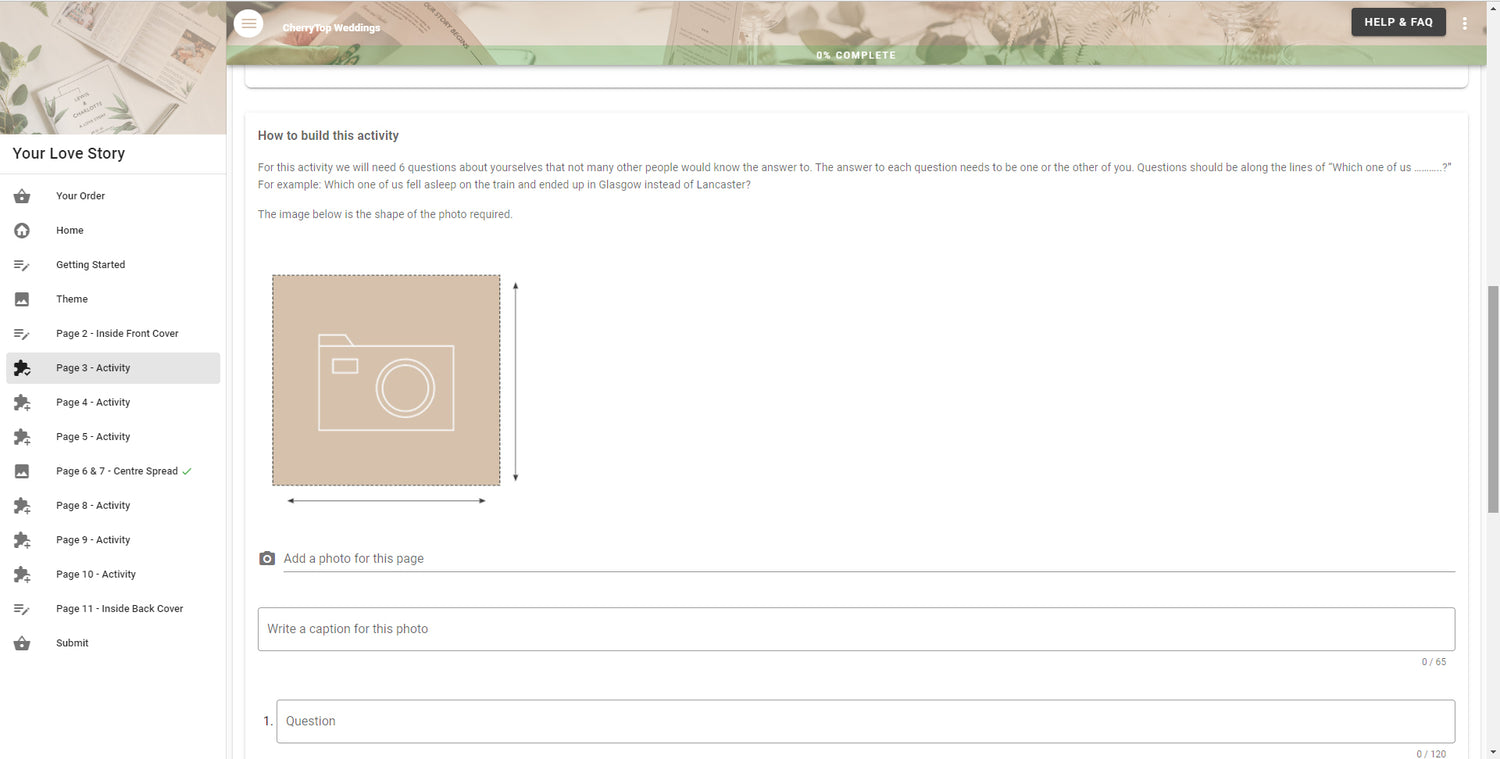 The process is very straight forward. You select your theme, activities, words and pictures as you start to build your wedding favour booklets.